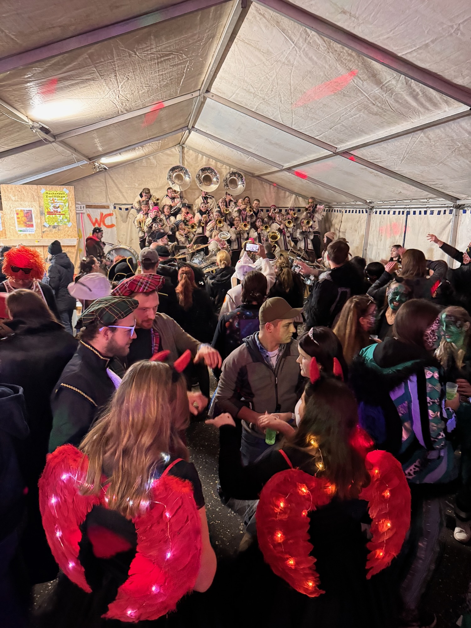 Der Füürball in Obfelden – jeweils erster Maskenball im Säuliamt – fand mit leicht geändertem Konzept statt. Der Singsaal selbst blieb geschlossen, man konzentrierte sich auf die Aussenbereiche im Zelt. Trotzdem fehlte es an nichts: Bar-Theke, Shot-Bar und Grill-Wagen waren vorhanden, die Kaffeestube wurde im Foyer des Singsaals einquartiert.