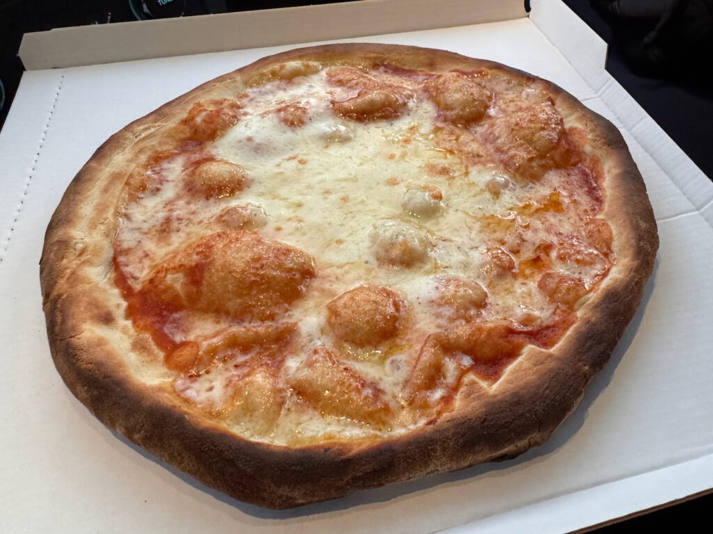 Und jetzt? Wie schmeckt den die Automaten-Pizza. Erstens, sie ist heiss. Zweitens der Teig ist knusprig und Drittens es ist alles da, was auf eine Margherita gehört. Von der Tomatensauce etwas wenig, dafür etwas viel Öl. Aber alles in allem ein schnelles Essen, wirklich warm und frisch. Für 12 Franken angemessen.